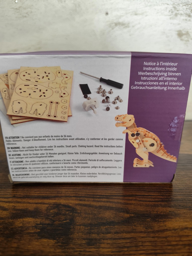 Ce kit contient 67 pièces en bois prédécoupées à assembler facilement, sans colle ni outils, pour donner vie à un T-Rex articulé et mécanique en 3D.
