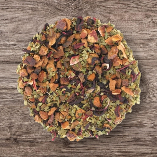 Ce mélange réconfortant associe la vitalité du maté vert à la chaleur épicée de la cannelle et à la douceur fruitée de la pomme. Rehaussé par les notes florales de l’hibiscus et une pointe naturelle de stévia, il offre une infusion équilibrée, légèrement sucrée et pleine de caractère.